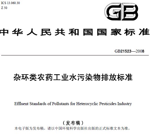 雜環類農藥工業水污染物排放標準GB 21523-2008