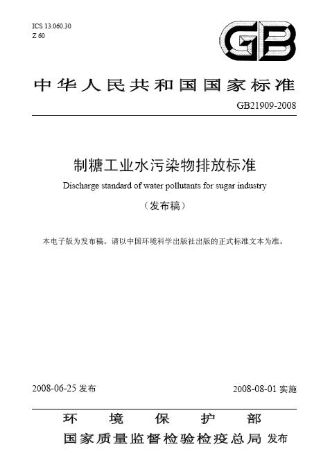制糖工業水污染物排放標準(GB 21909-2008)