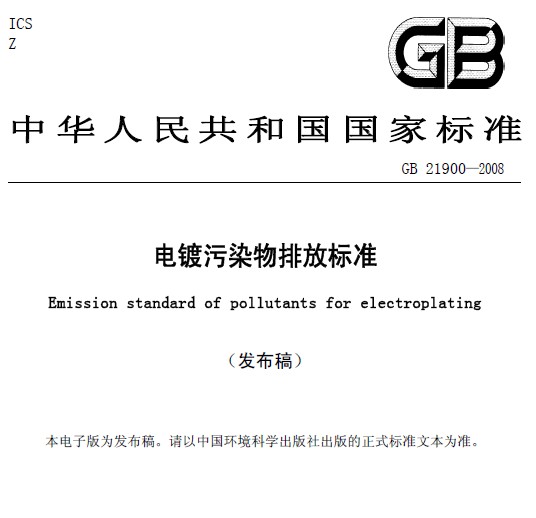 電鍍污染物排放標準(GB 21900—2008)