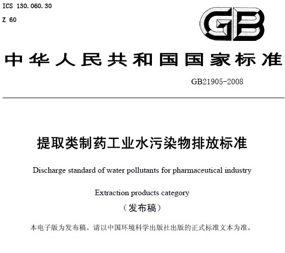 提取類制藥工業水污染物排放標準(GB 21905-2008)