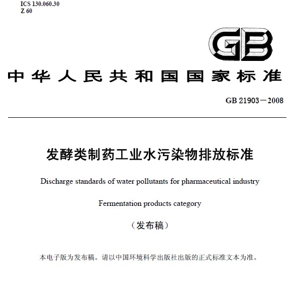 發酵類制藥工業水污染物排放標準(GB 21903-2008)