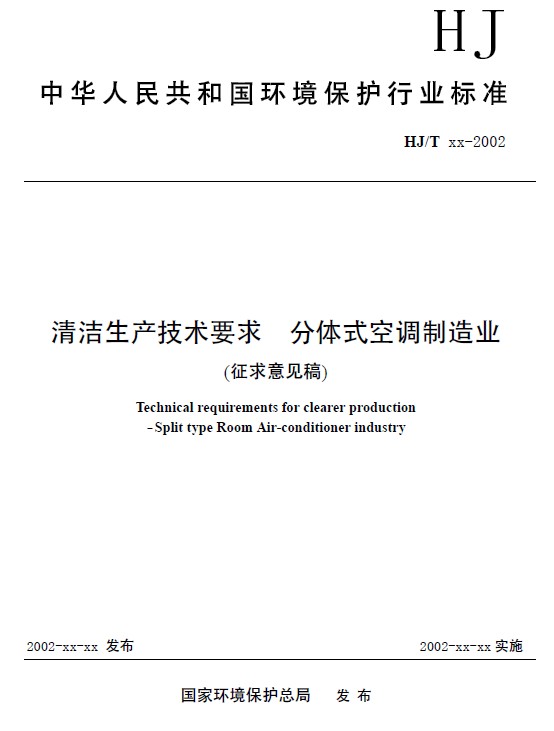 《清潔生產技術要求 分體式空調制造業》(征求意見稿)