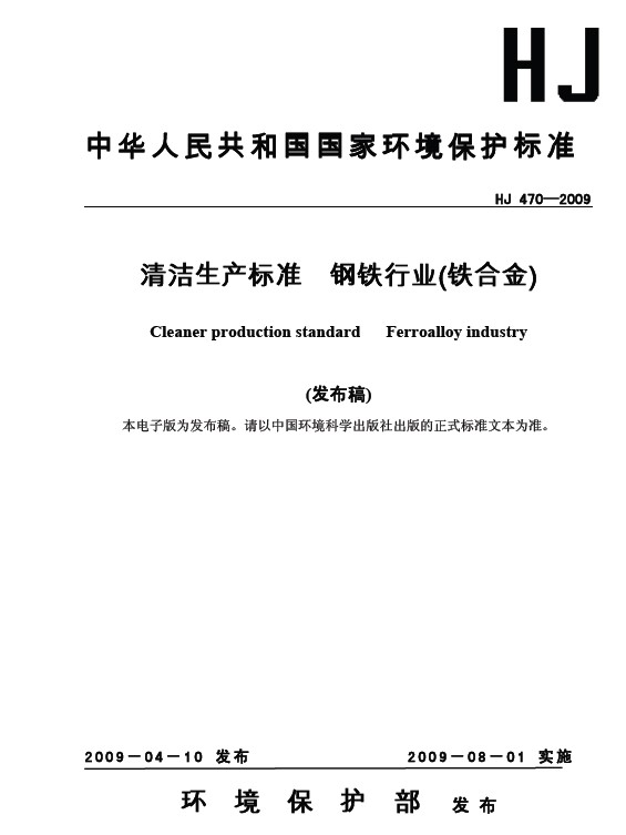 HJ 470-2009 清潔生產標準 鋼鐵行業(鐵合金)