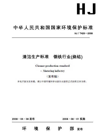 10清潔生產(chǎn)標準 鋼鐵行業(yè)(燒結(jié))