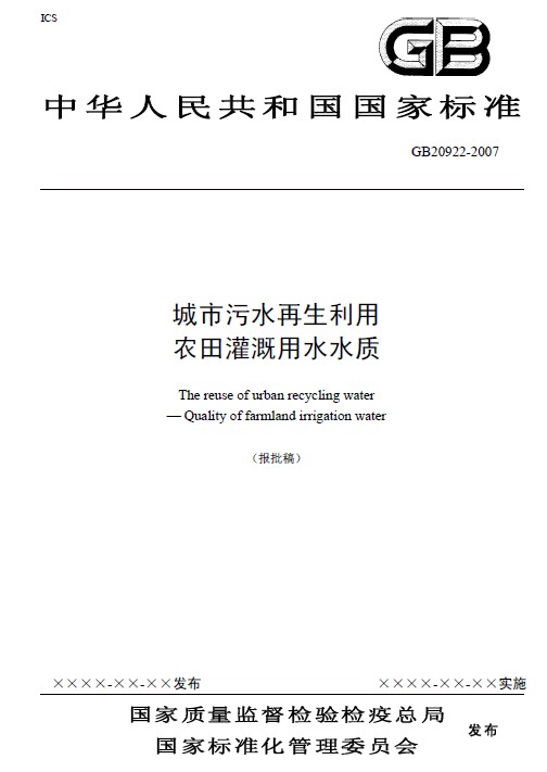 中華人民共和國國家標準城市污水再生利用-農田灌溉用水水質(報批稿)GB20922-2007
