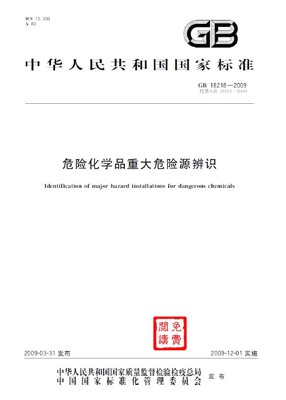 《危險化學品重大危險源辨識》GB18218-2009(2009.3.31)