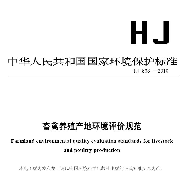 畜禽養殖產地環境評價規范 HJ568-2010
