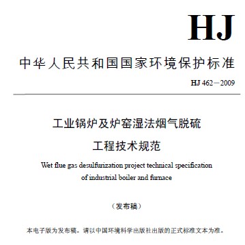 《工業鍋爐及爐窯濕法煙氣脫硫工程技術規范》(HJ462-2009)